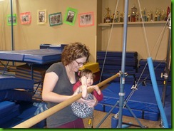 After we warmed up and stretched out then it was time for the bars. Emily was not sure what to do with these – she will get it….